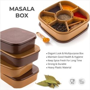 ✅️ Elegant square masala box with 6 compartments to organize all your daily spices neatly.