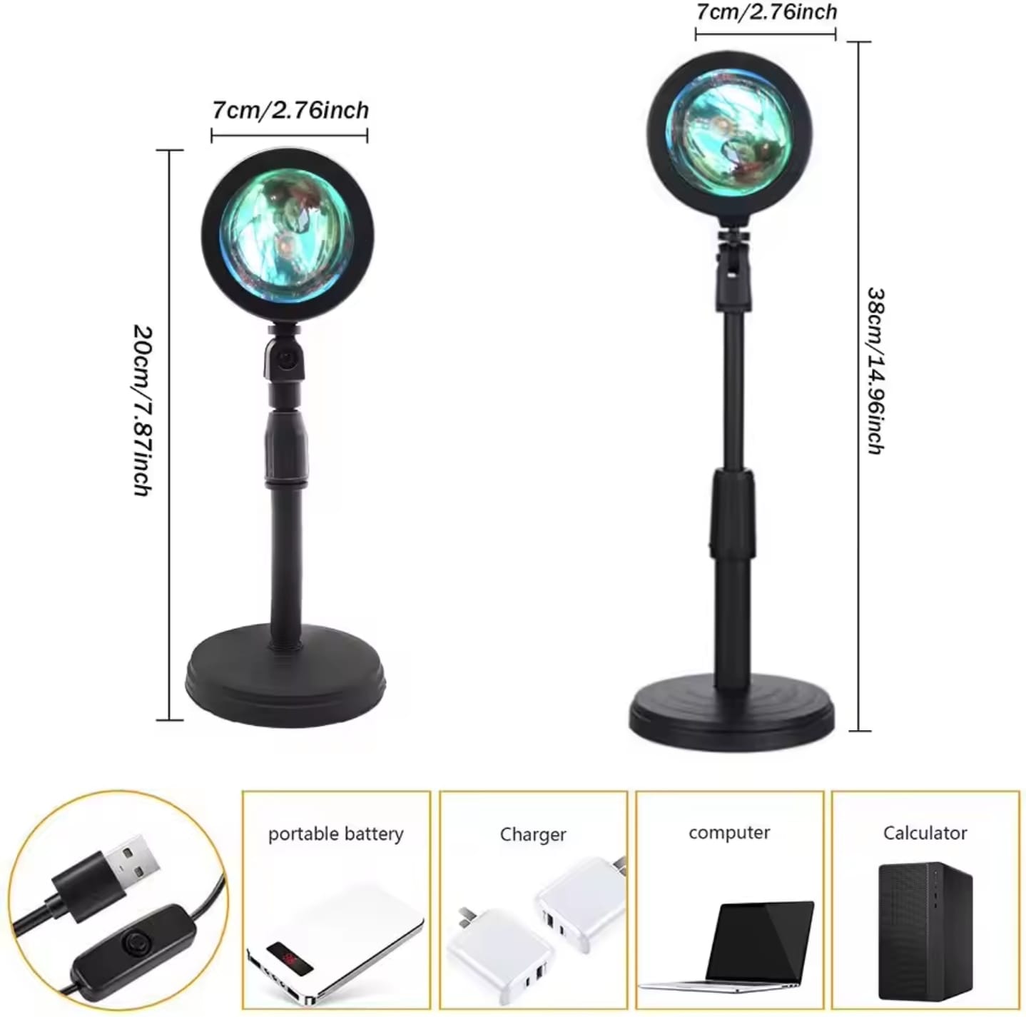 🟡 Size: Lamp Head Diameter 7 cm | Height Adjustable from 20 cm to 38 cm