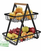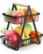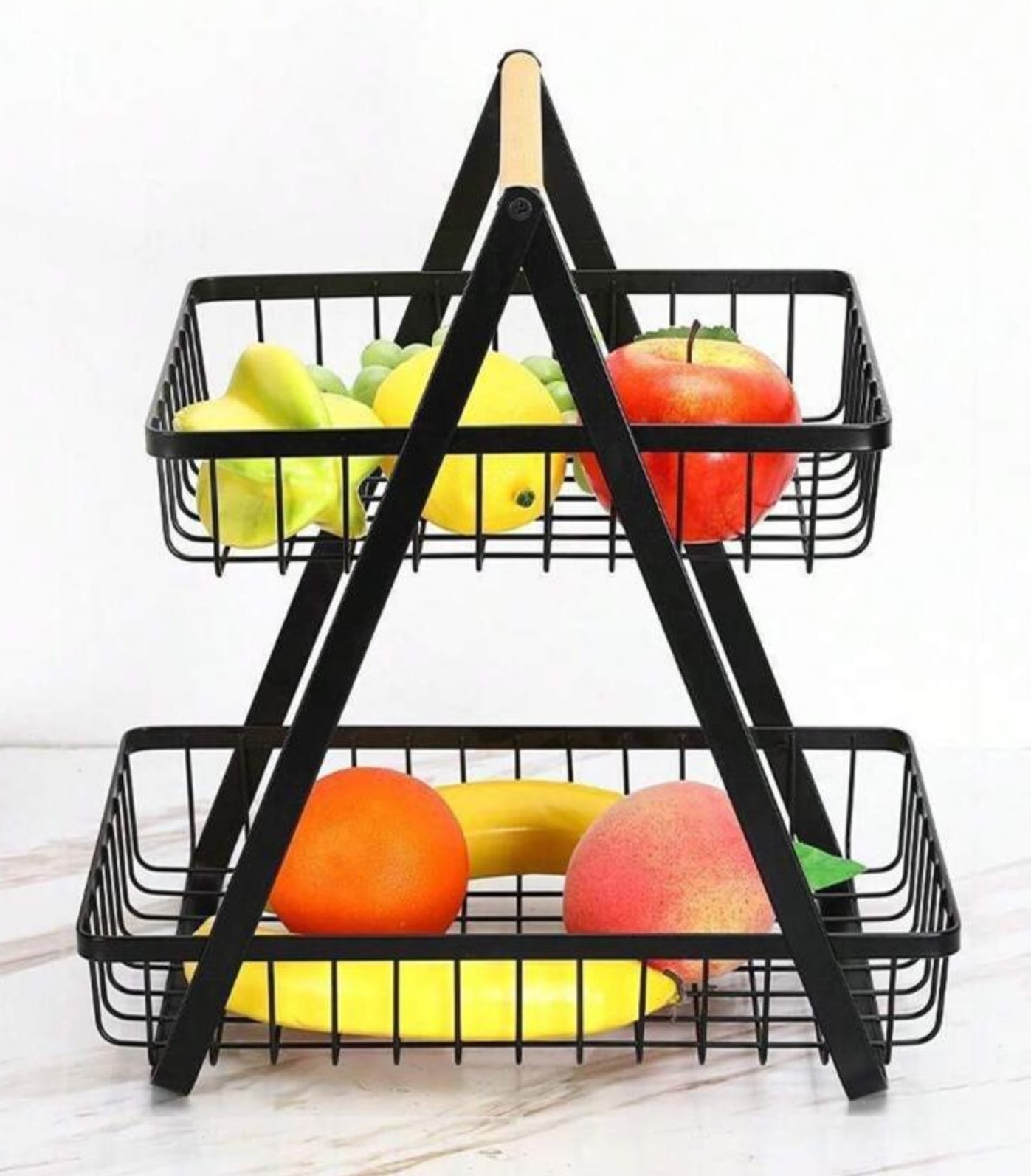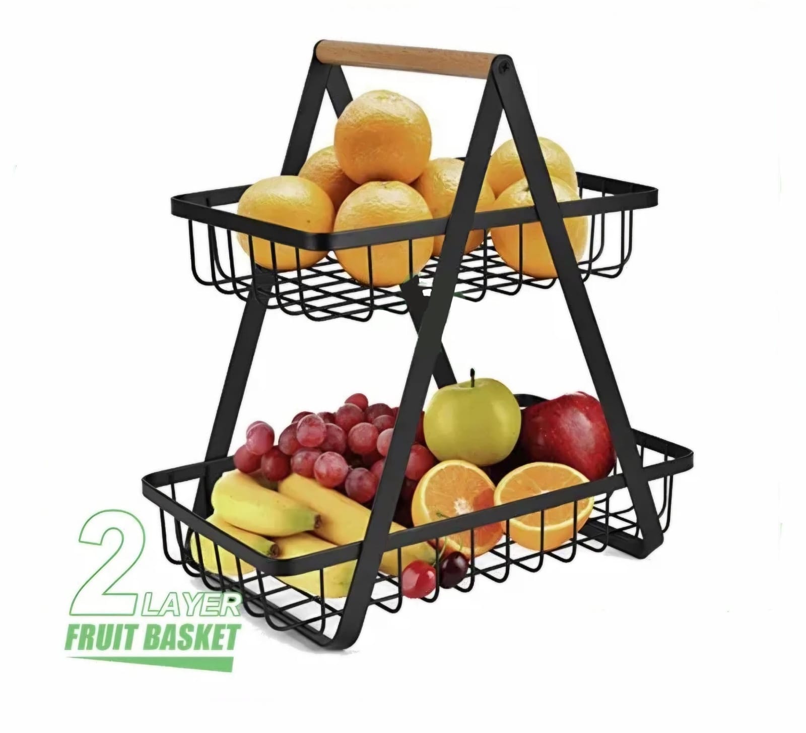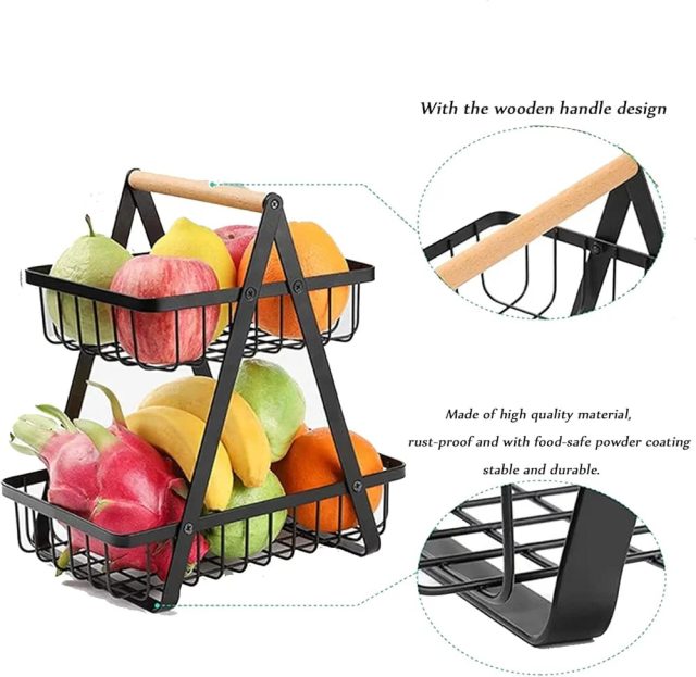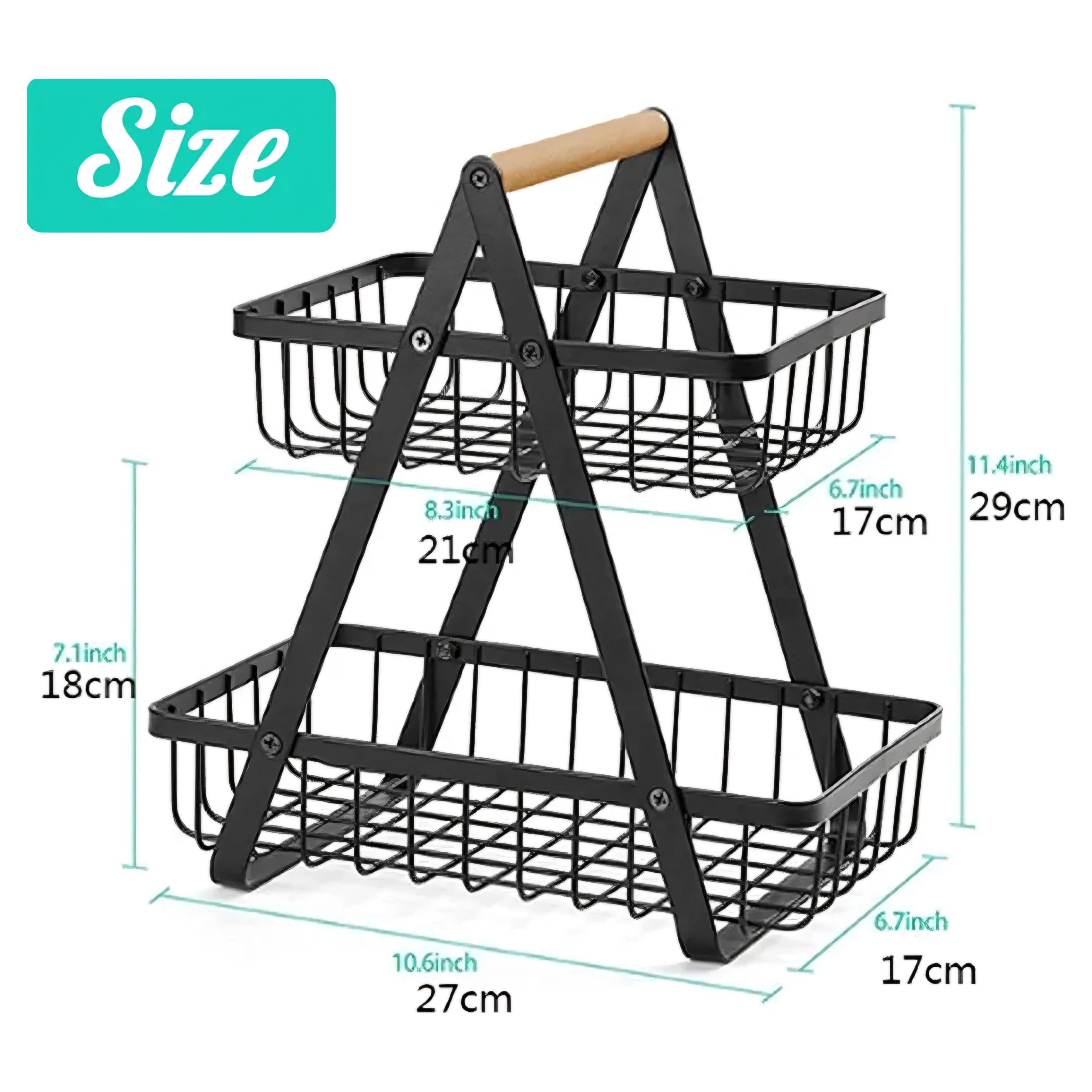✅ Space-saving two-tier basket for fresh fruits. ✅ Made with durable carbon steel for long-lasting use. ✅ Perfect for kitchen or dining table display.
