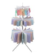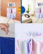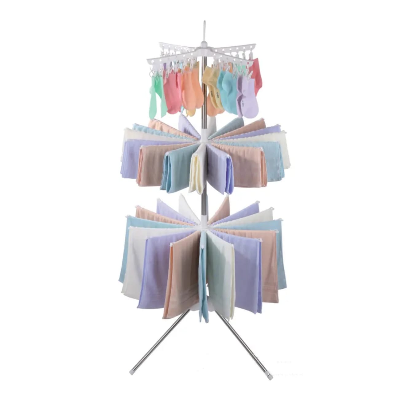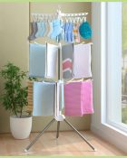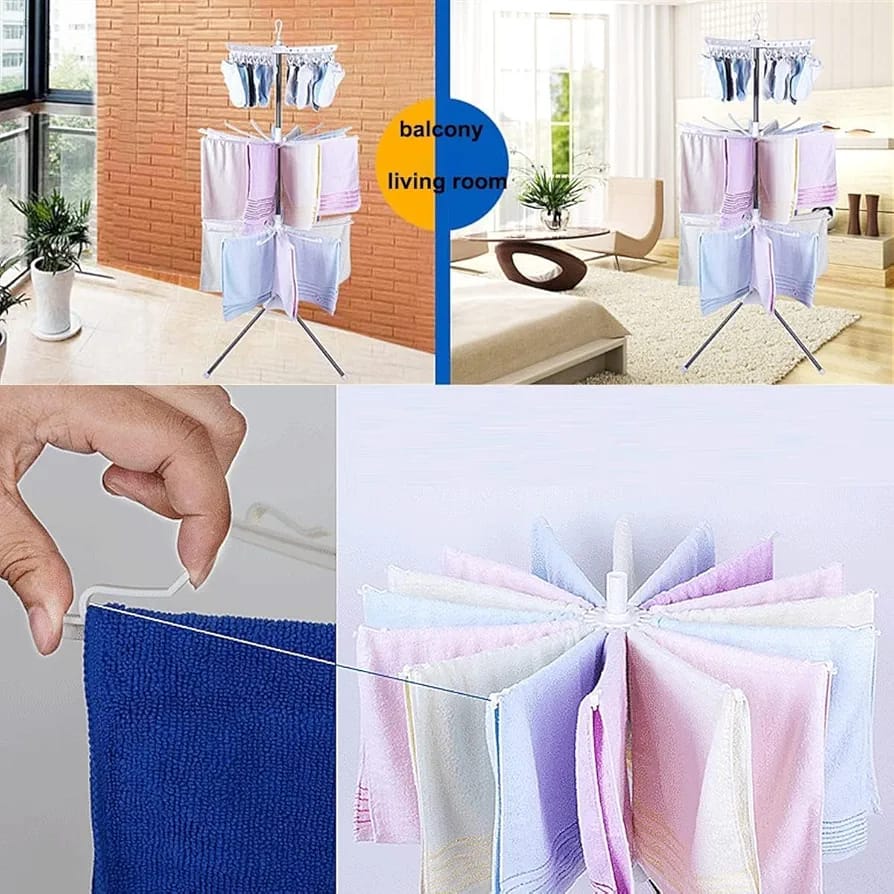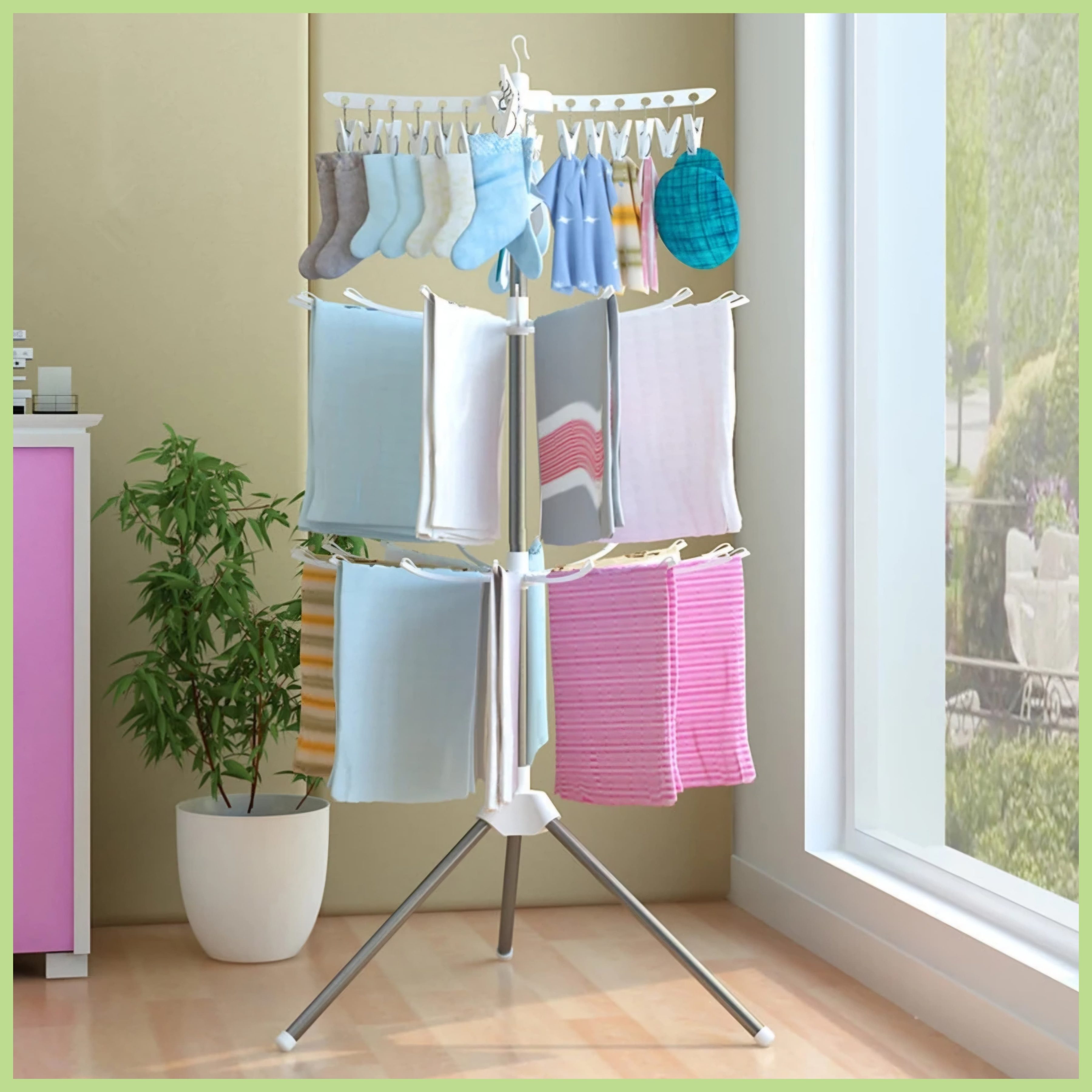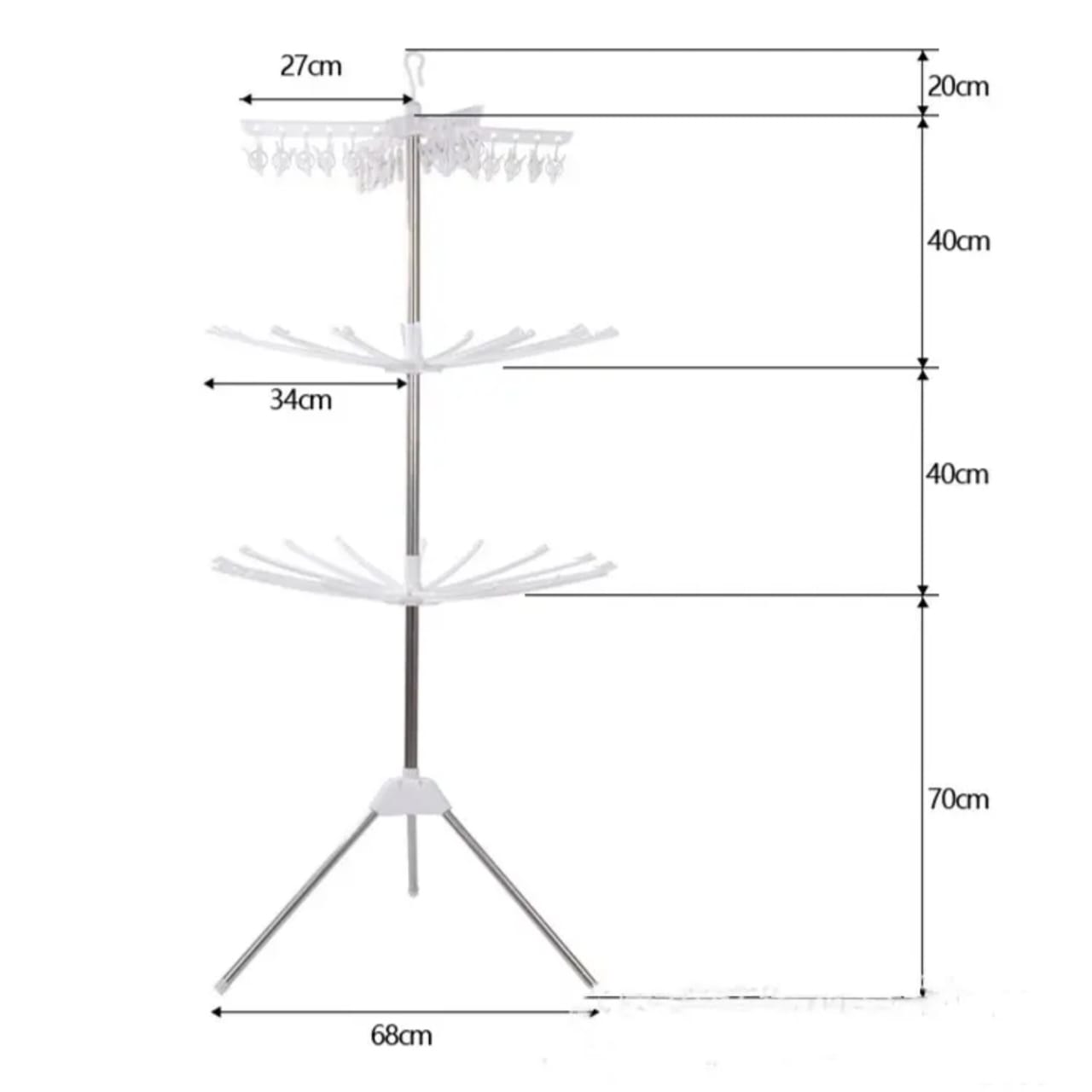 ✅Compact and functional 3-tier cloth hanger for efficient drying. ✅Sturdy metal tubes with plastic joints for durability. ✅Ideal for indoor use with easy setup and storage.