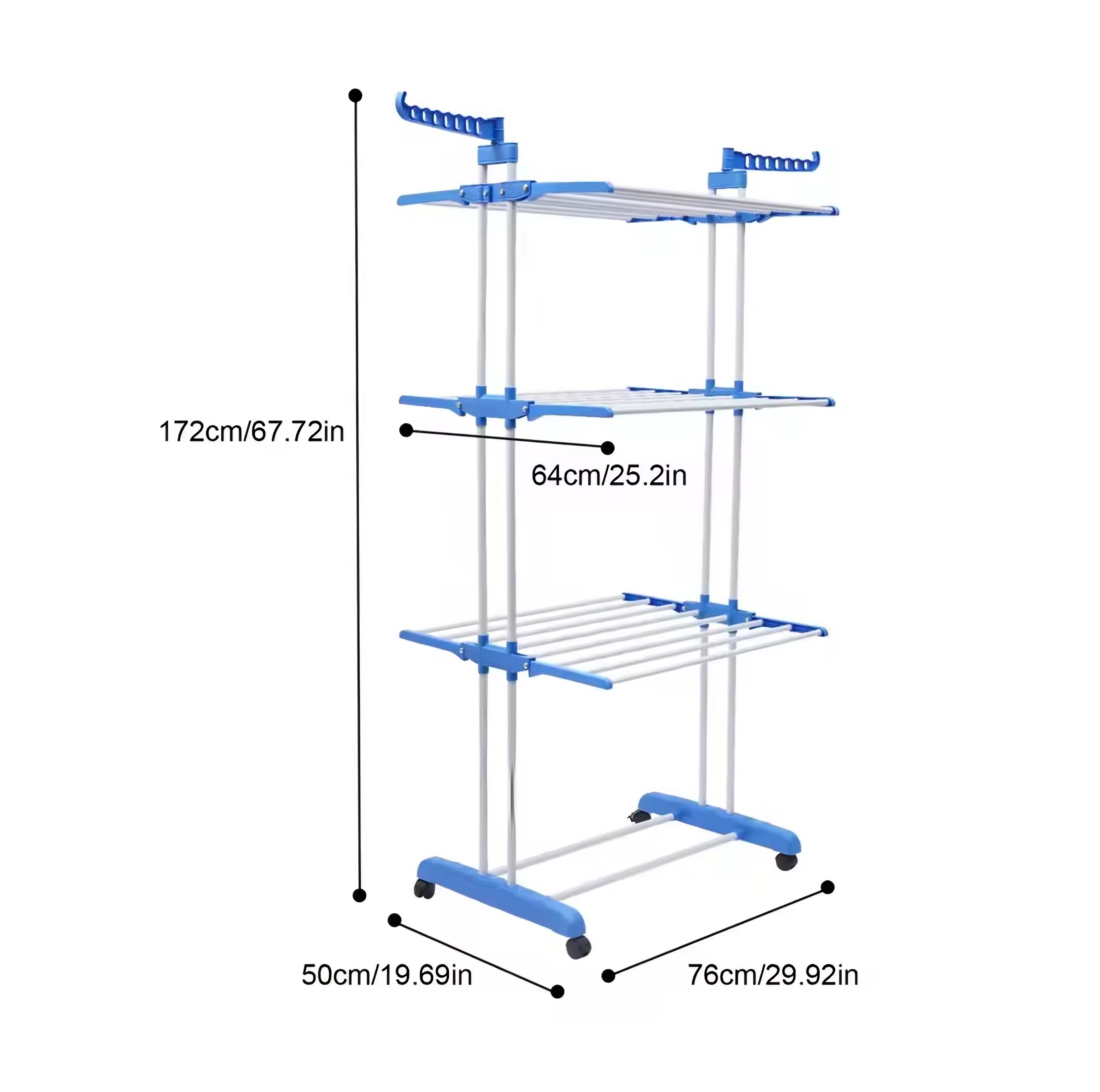 ✅ It features three spacious levels for drying clothes, towels, and more.