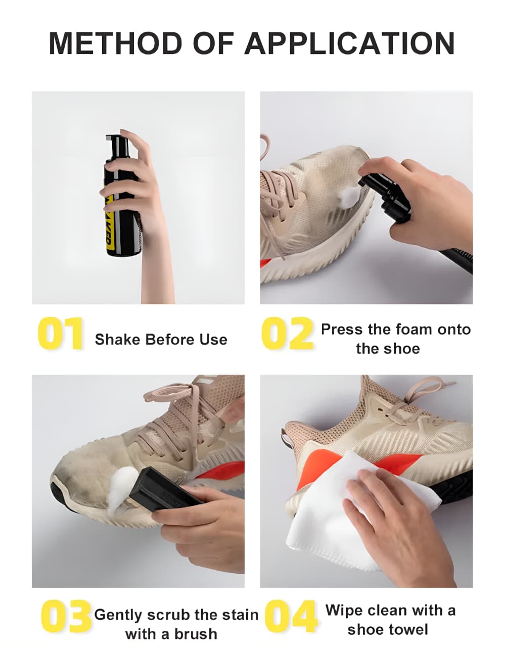 ✅️ Special foam cleaner effectively removes dirt, stains, and dust from shoes.