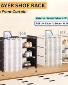 ✅️ Compact shoe organizer with four spacious layers for neat storage. ✅️ Front curtain design keeps shoes hidden and protected from dust.