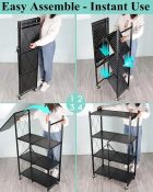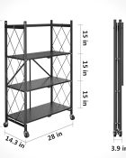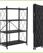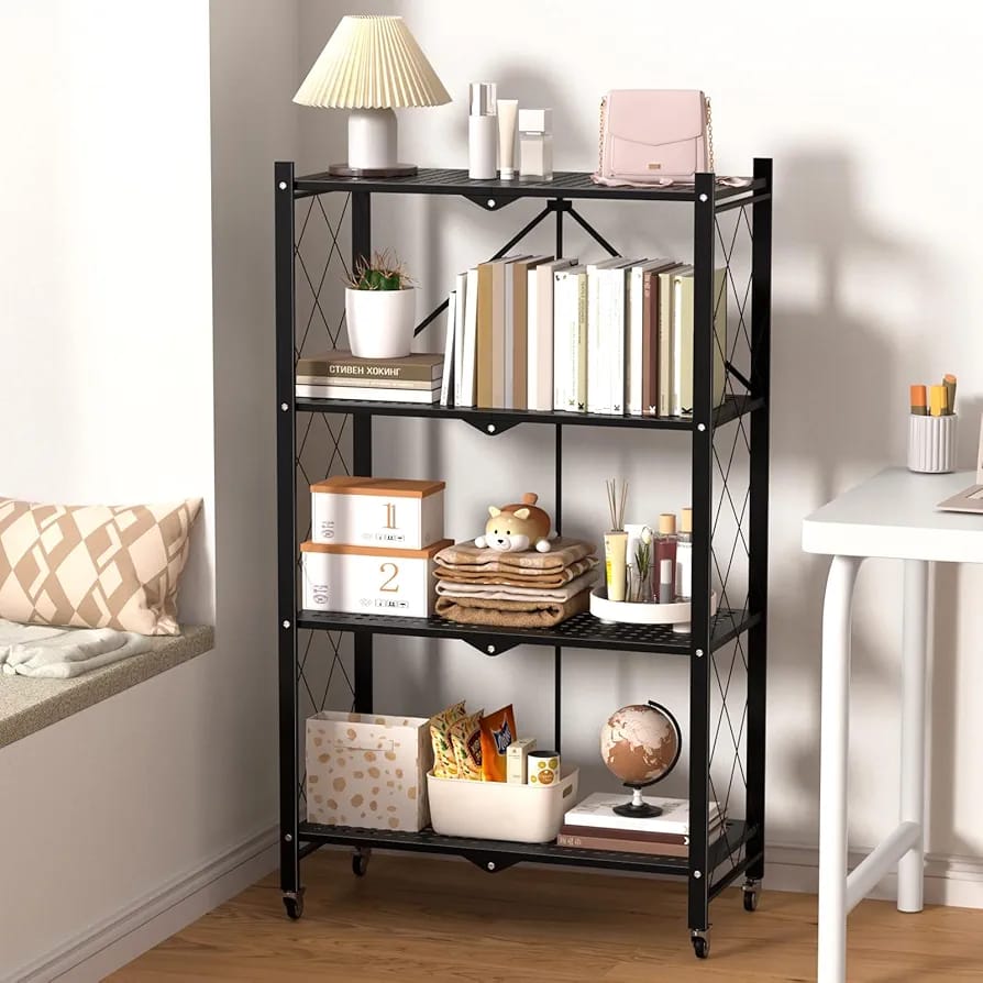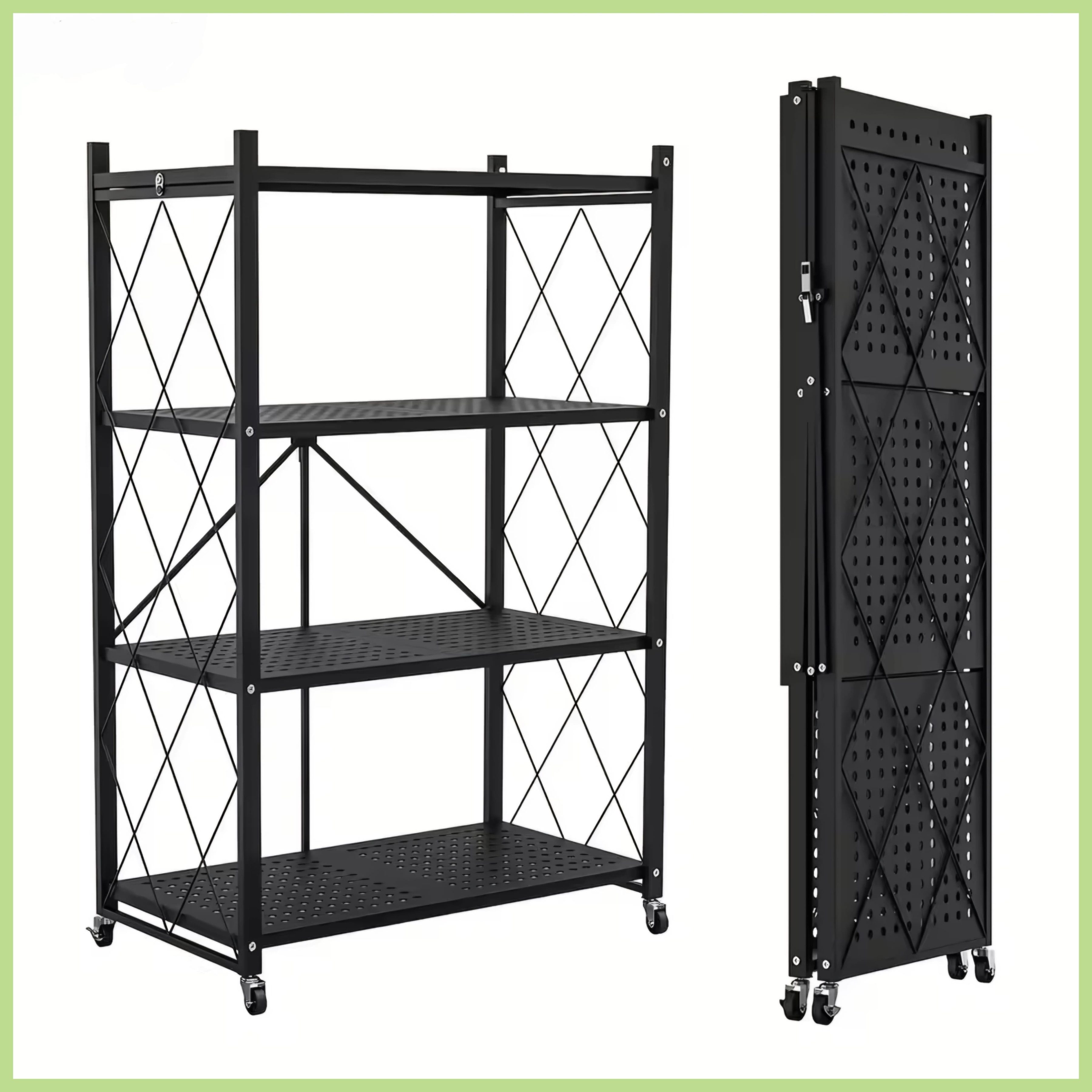 ✅Durable and foldable 4-tier metal shelf for versatile storage. ✅Compact design with easy fold and roll functionality. ✅Ideal for organizing kitchen, office, or living spaces.