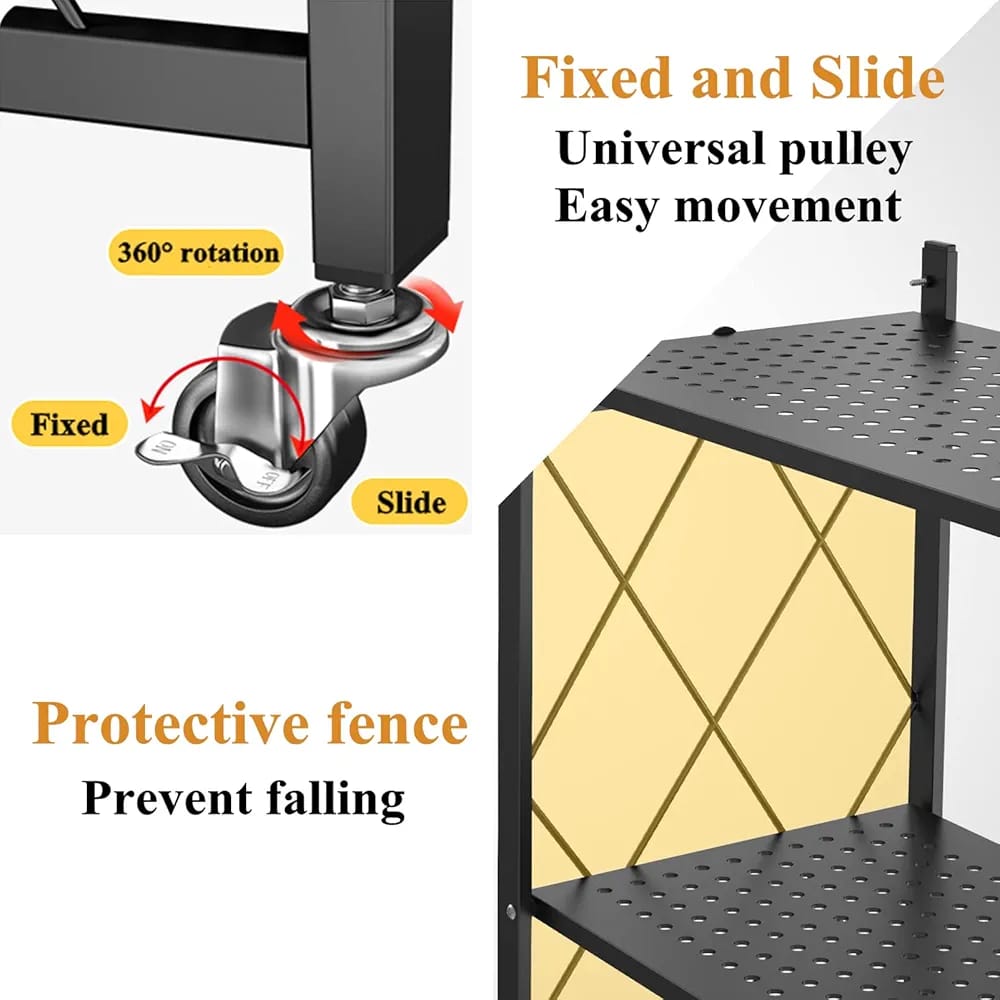 ✅This shelf has Four sturdy Steel tiers for heavy-duty storage.