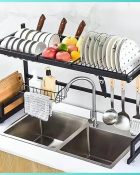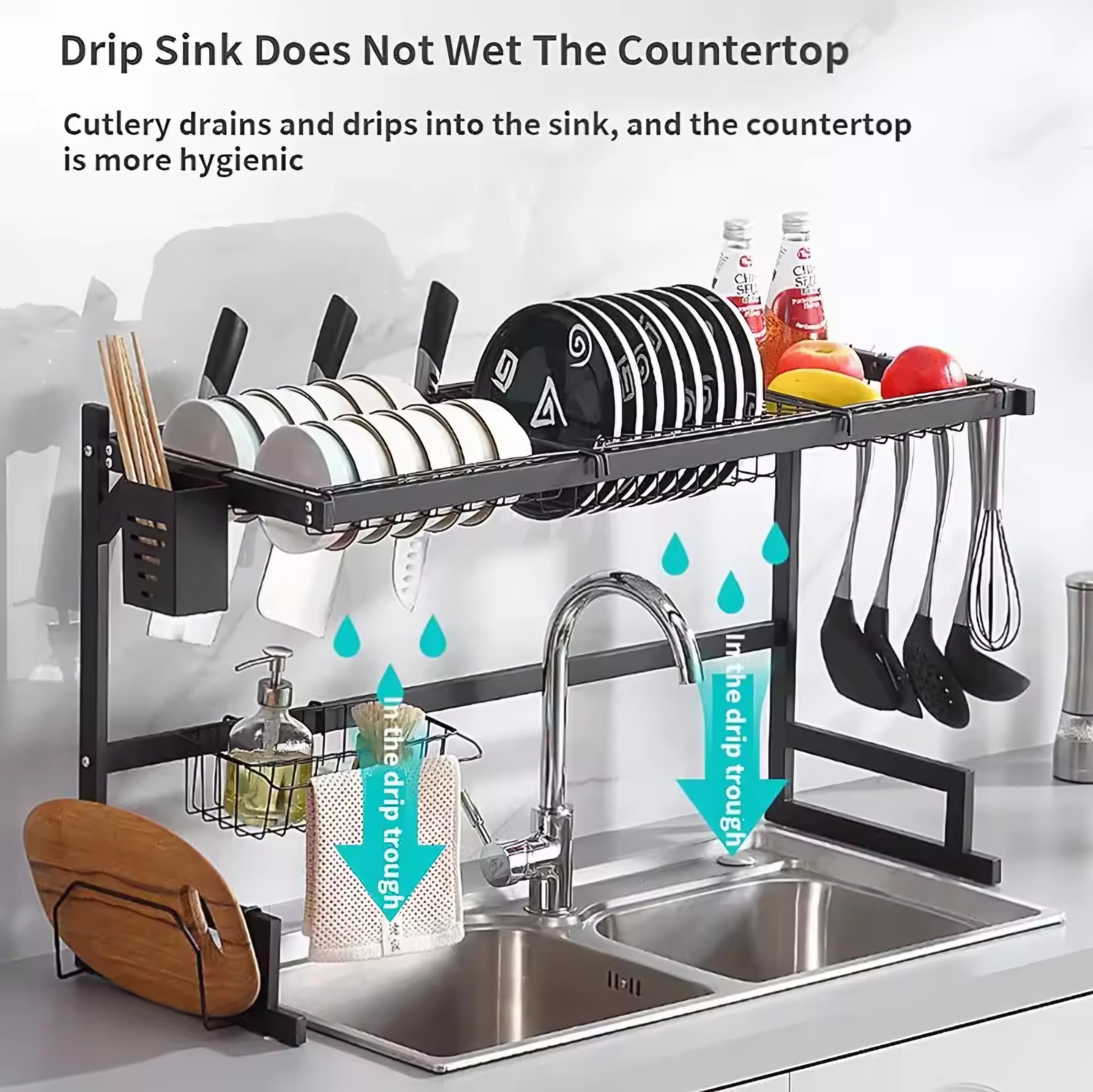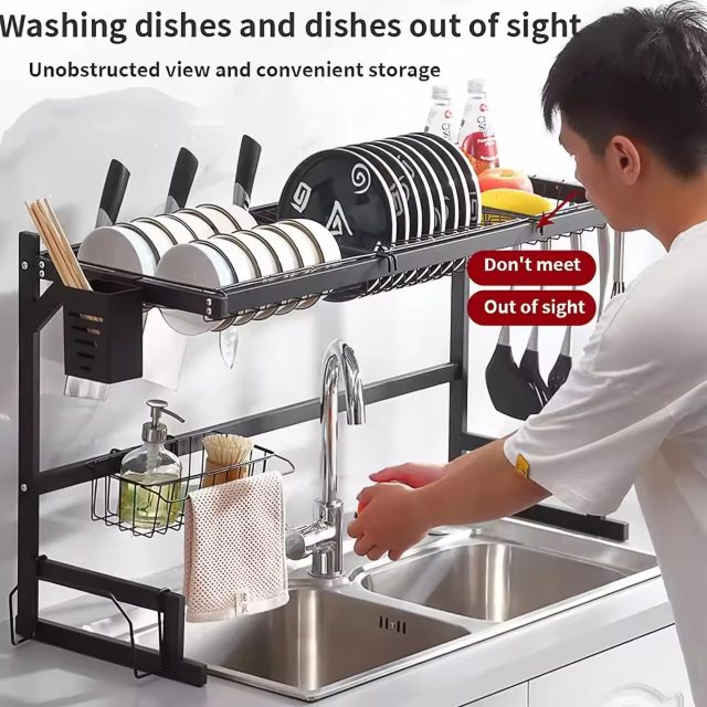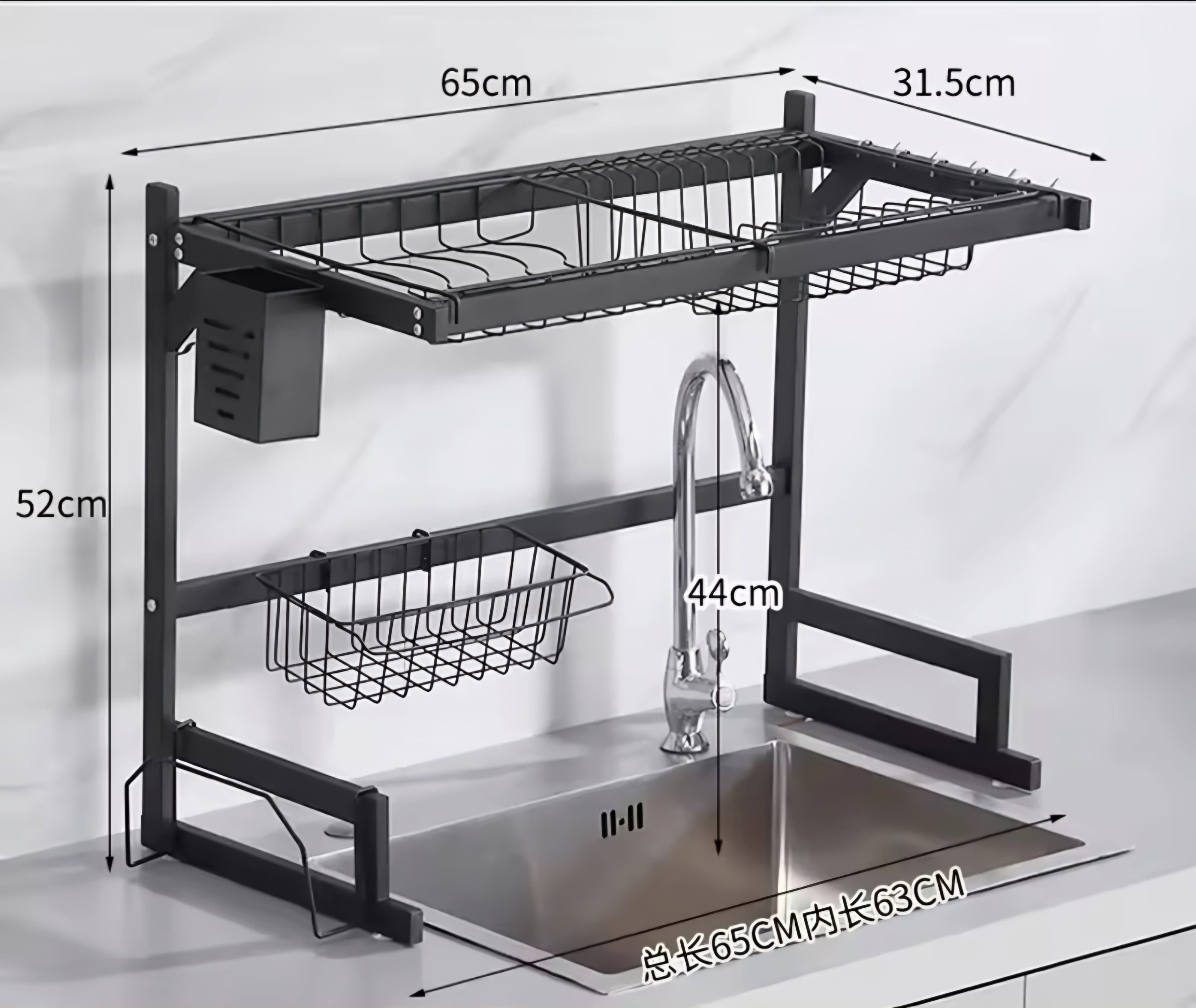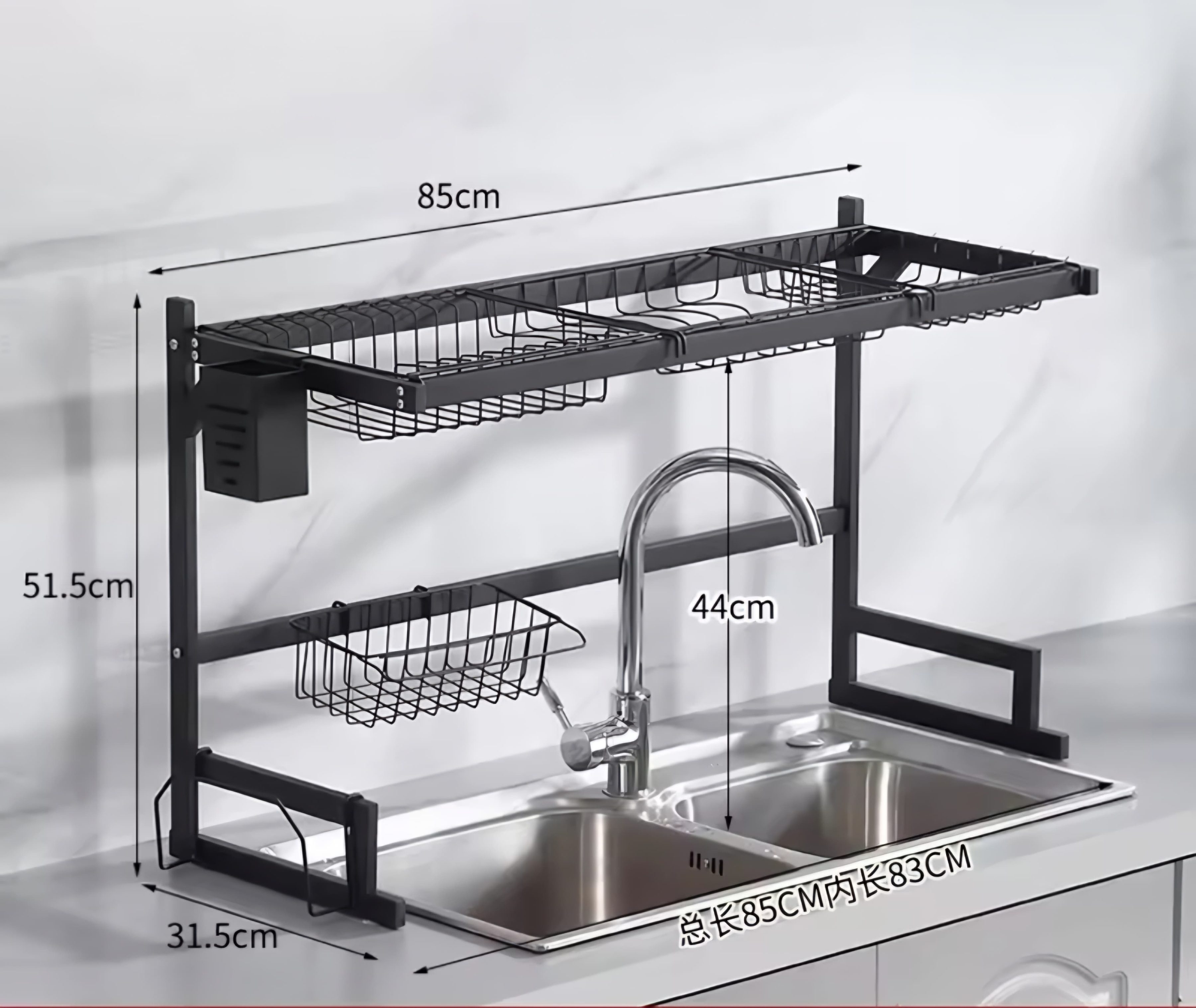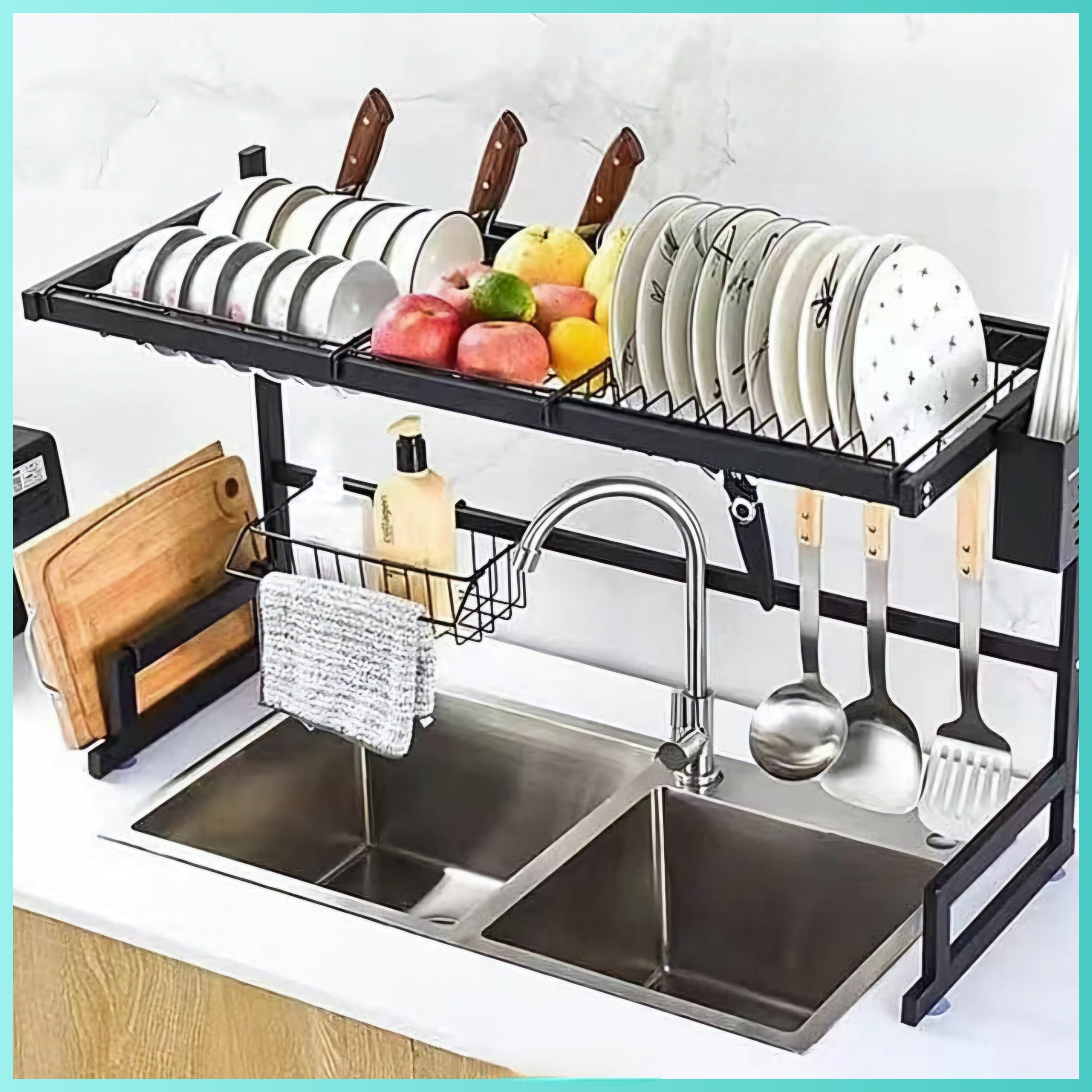 A stylish and functional kitchen rack, perfect for maximizing sink area. It holds dishes, utensils, and more, keeping your kitchen tidy. 65cm And 85cm Two sizes available