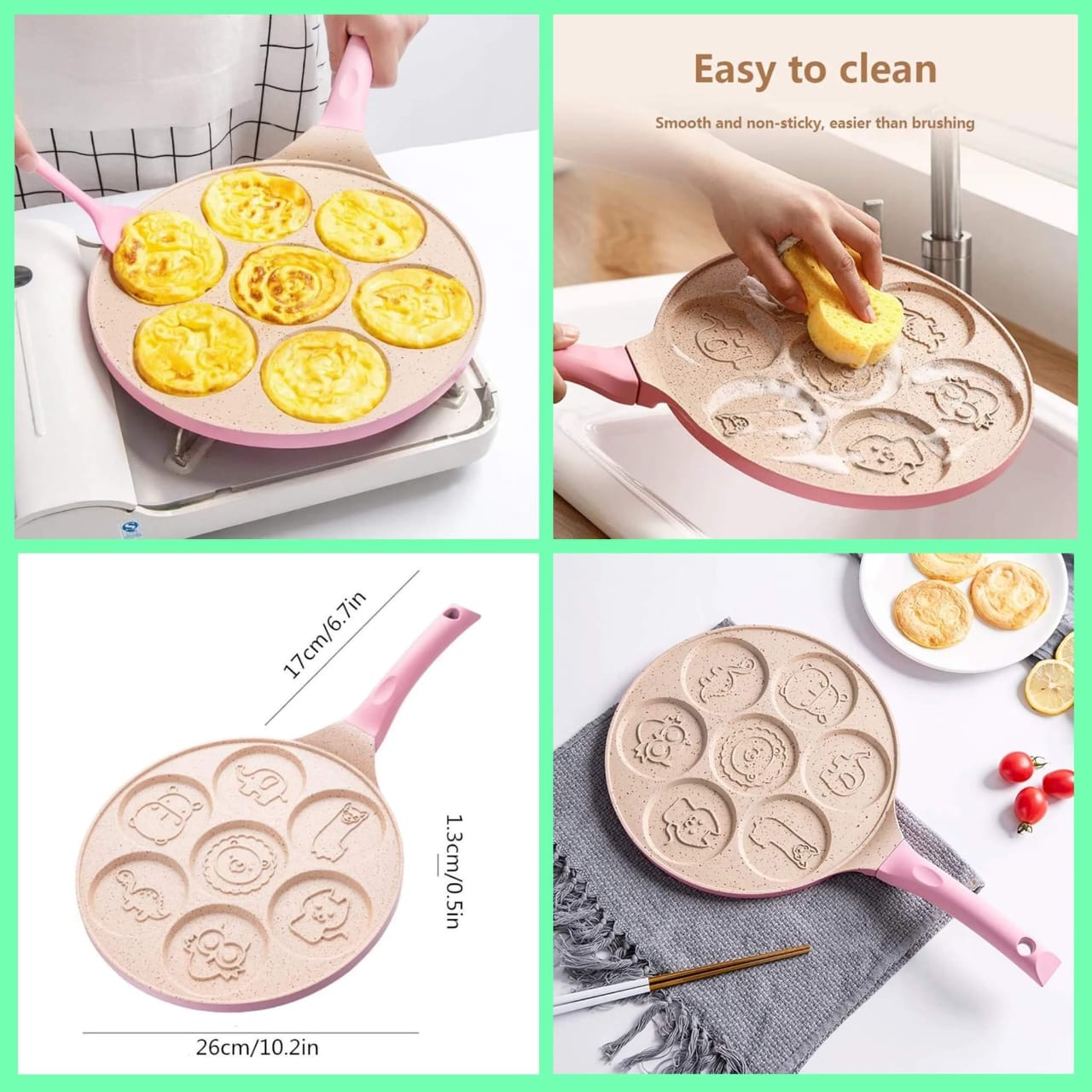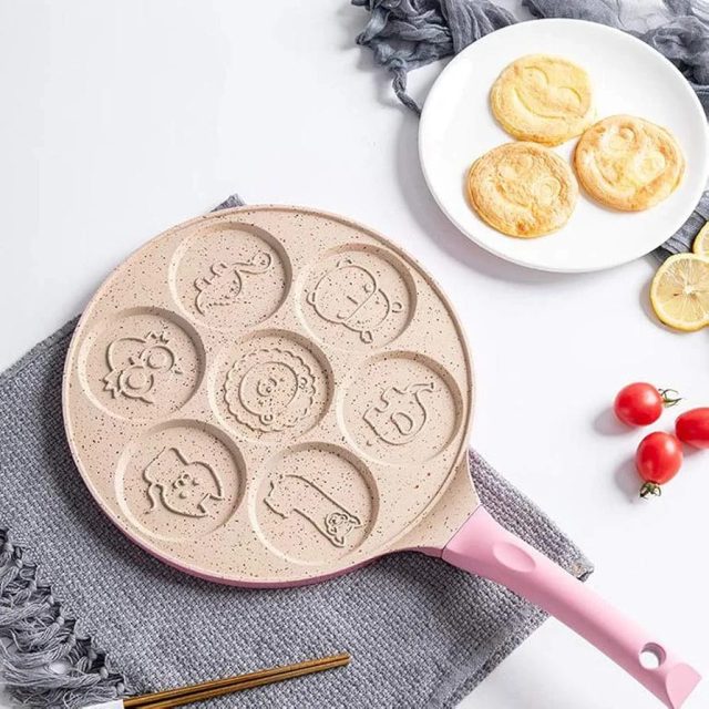 ✅ Cute non-stick breakfast pan with cartoon molds for fun cooking. ✅ Ideal for kids' pancakes, eggs, or mini snacks.