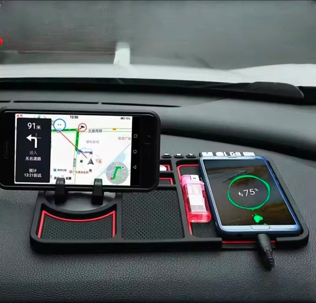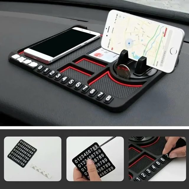 ✅️ Multifunctional non slip dashboard mat with phone holder for convenient car storage.
