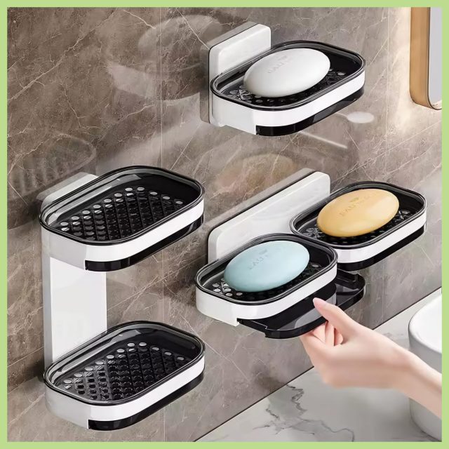 ✅️ Elegant wall-mounted soap rack for bathroom and kitchen. ✅️ Dual-layer design with drainage to keep soaps dry and clean.