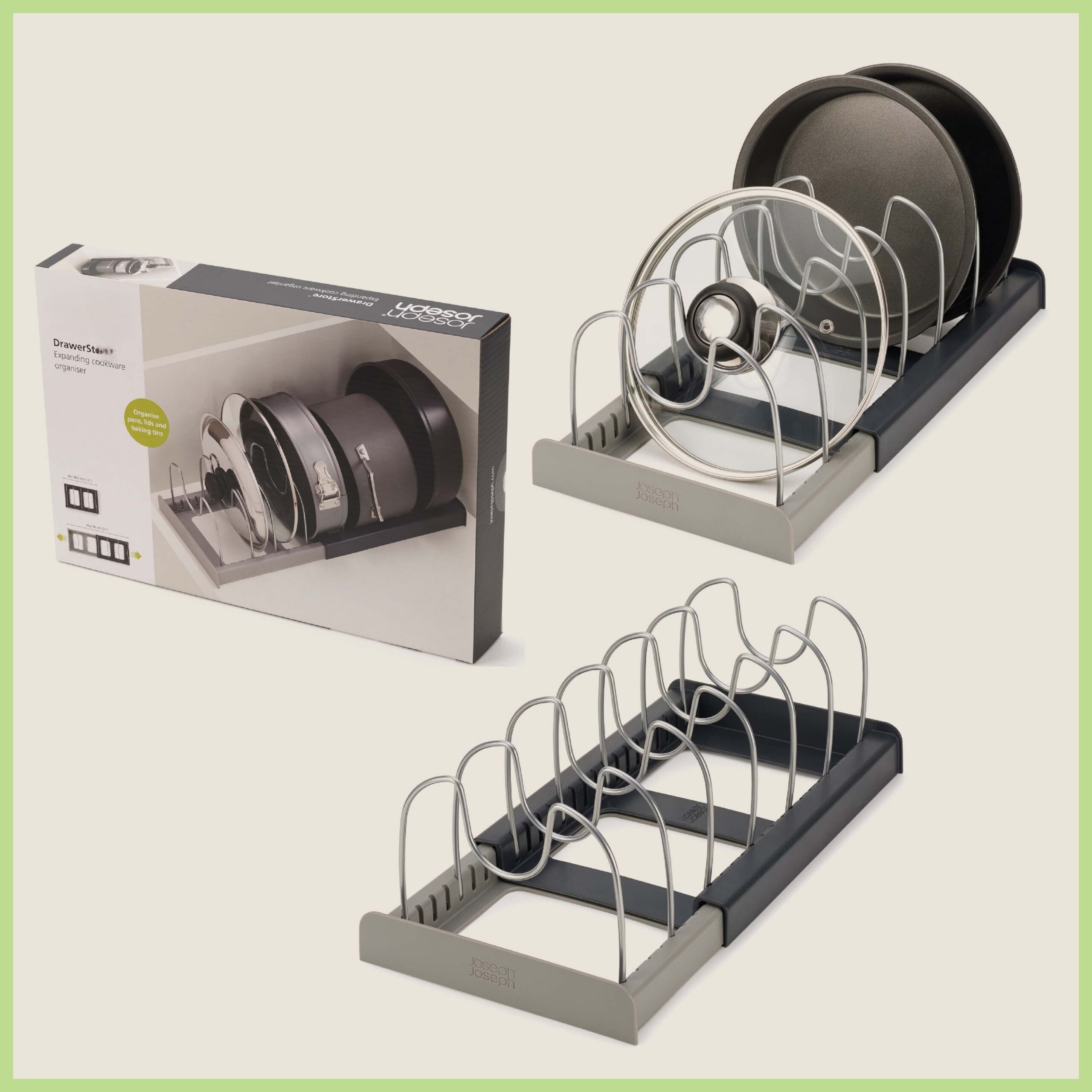 ✅ Made to hold pots, pans, and plate lids in an organized manner.