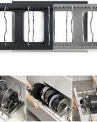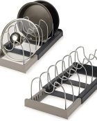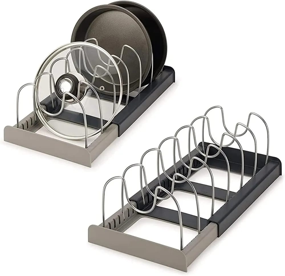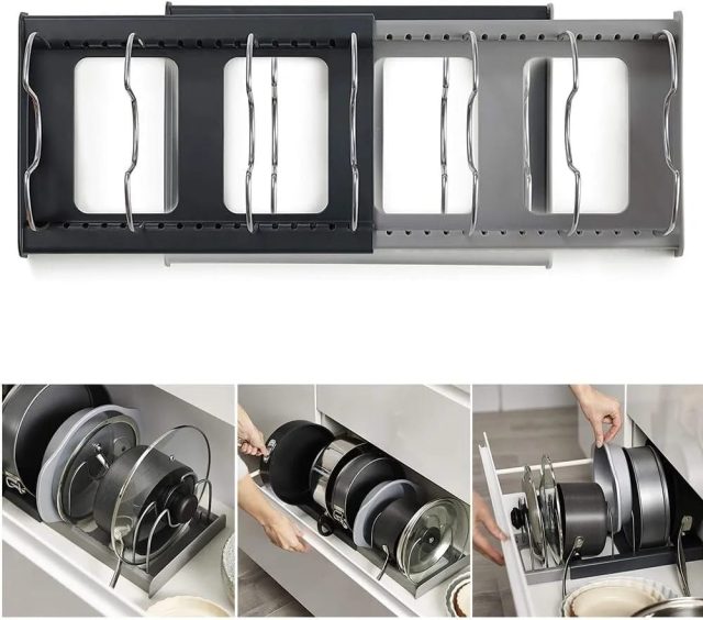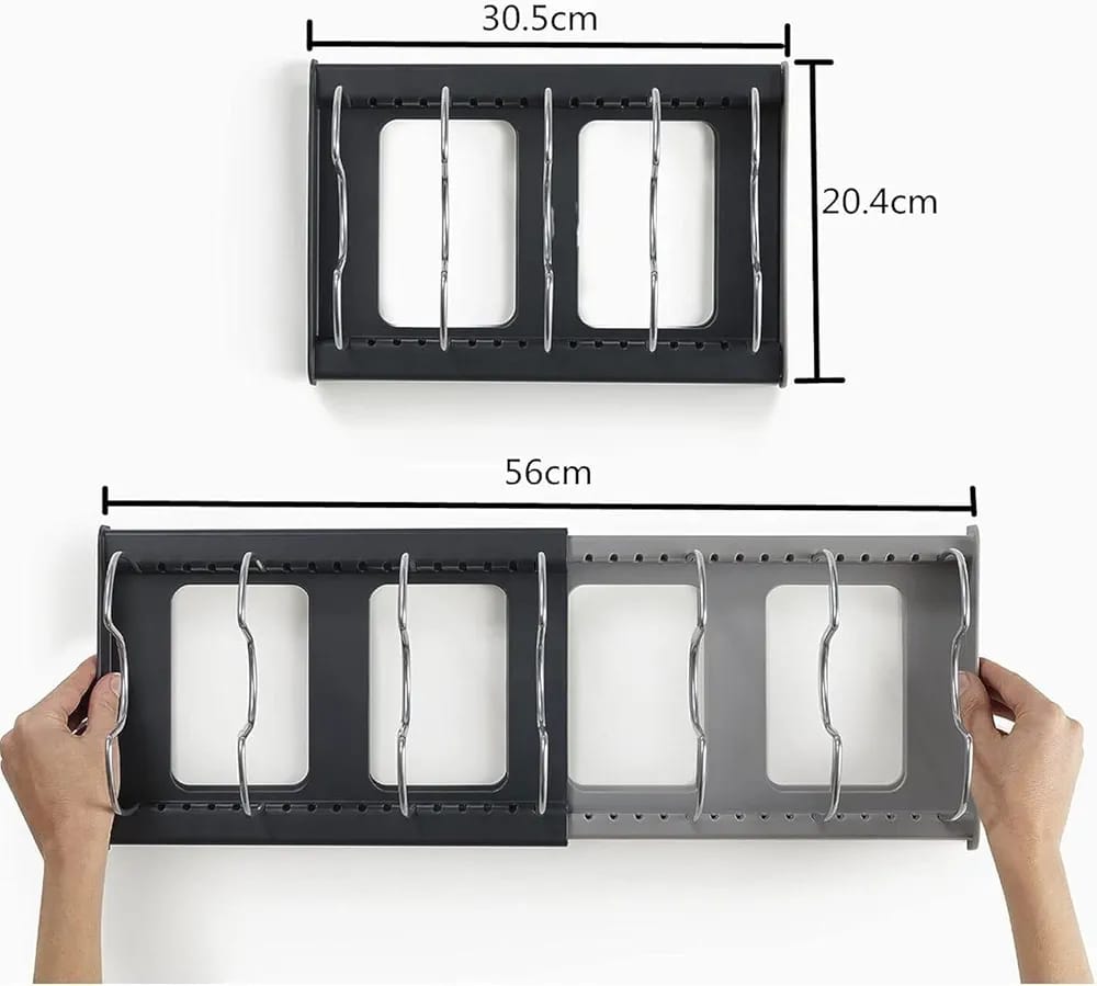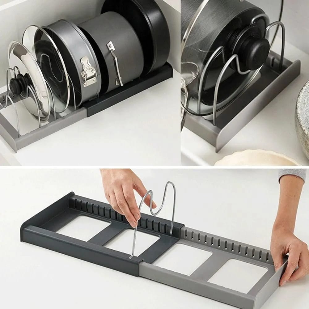 ✅ Adjustable organizer for pots, lids, and plates. ✅ Space-saving solution for your kitchen storage needs.