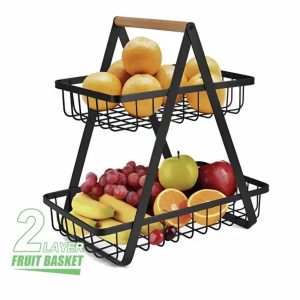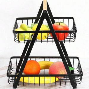 2 Layer Fruit Basket With Wooden Handle