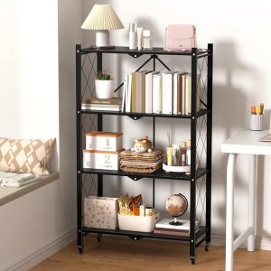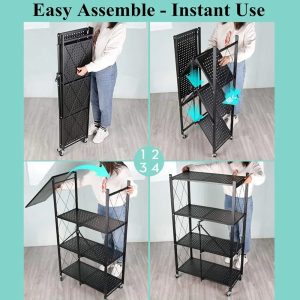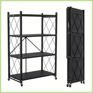 ✅Durable and foldable 4-tier metal shelf for versatile storage.
