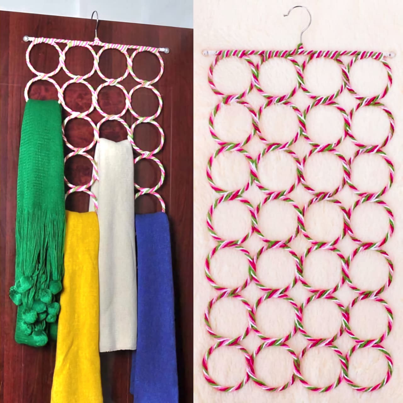 ✅️ Multiple circular slots keep scarves wrinkle free and organized.