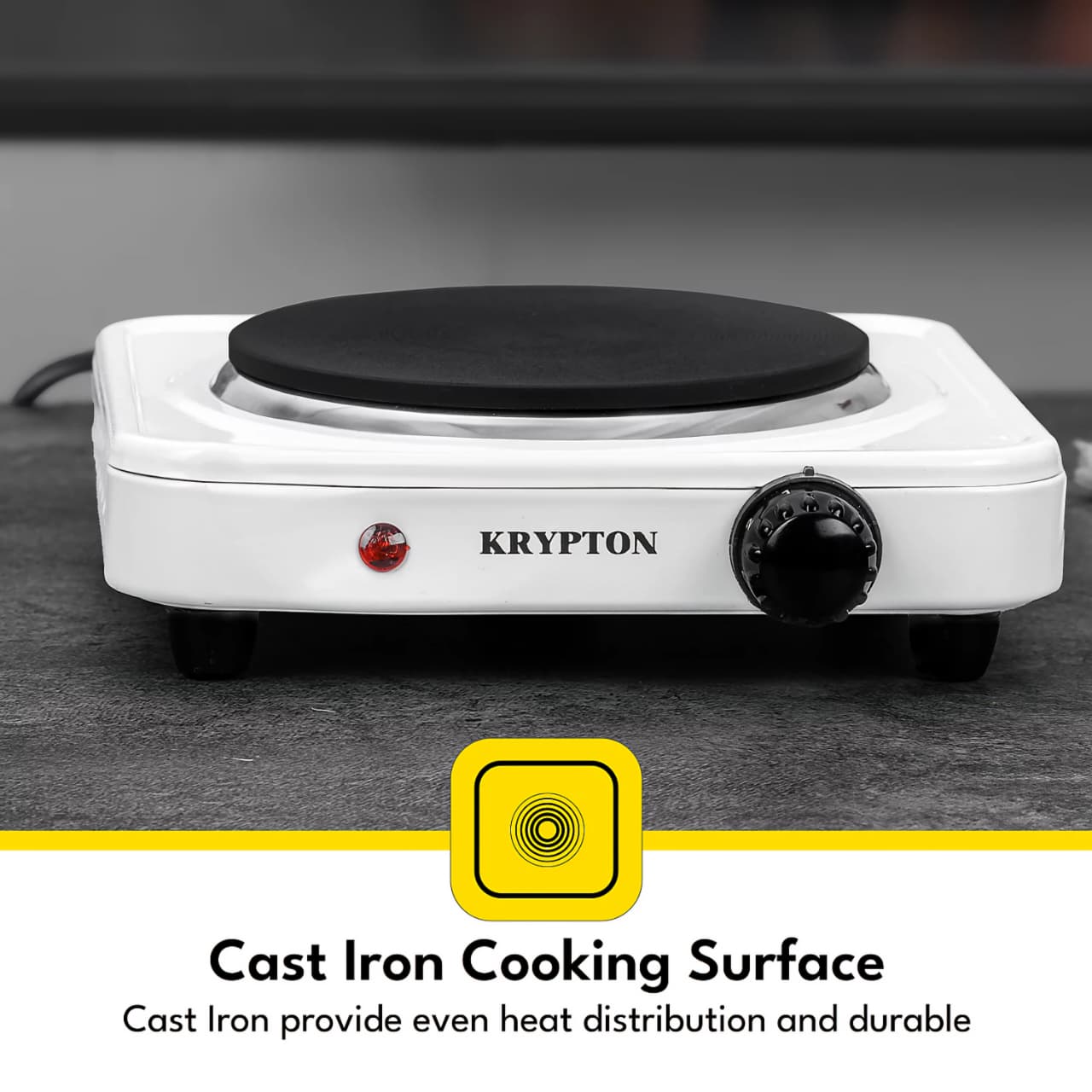 🟡 Material: Cast Iron Heating Plate with Metal Body