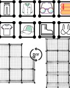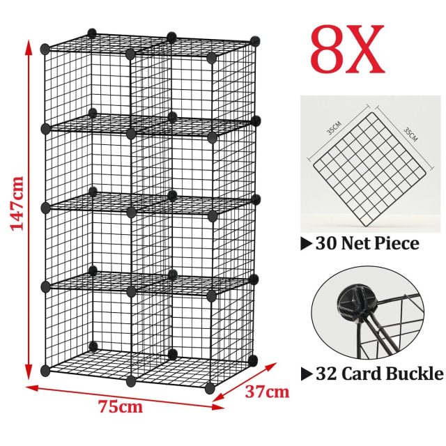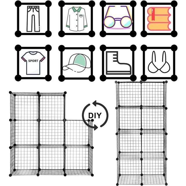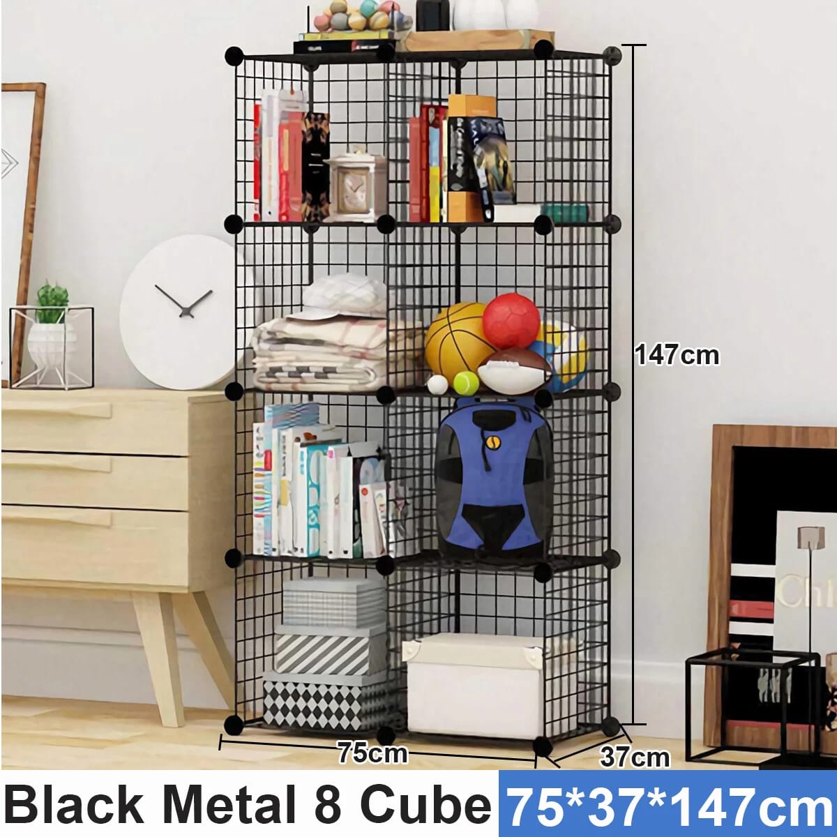 ✅️ Durable modular metal storage rack with 8 cube compartments designed for organizing books, clothes, toys, and household items.