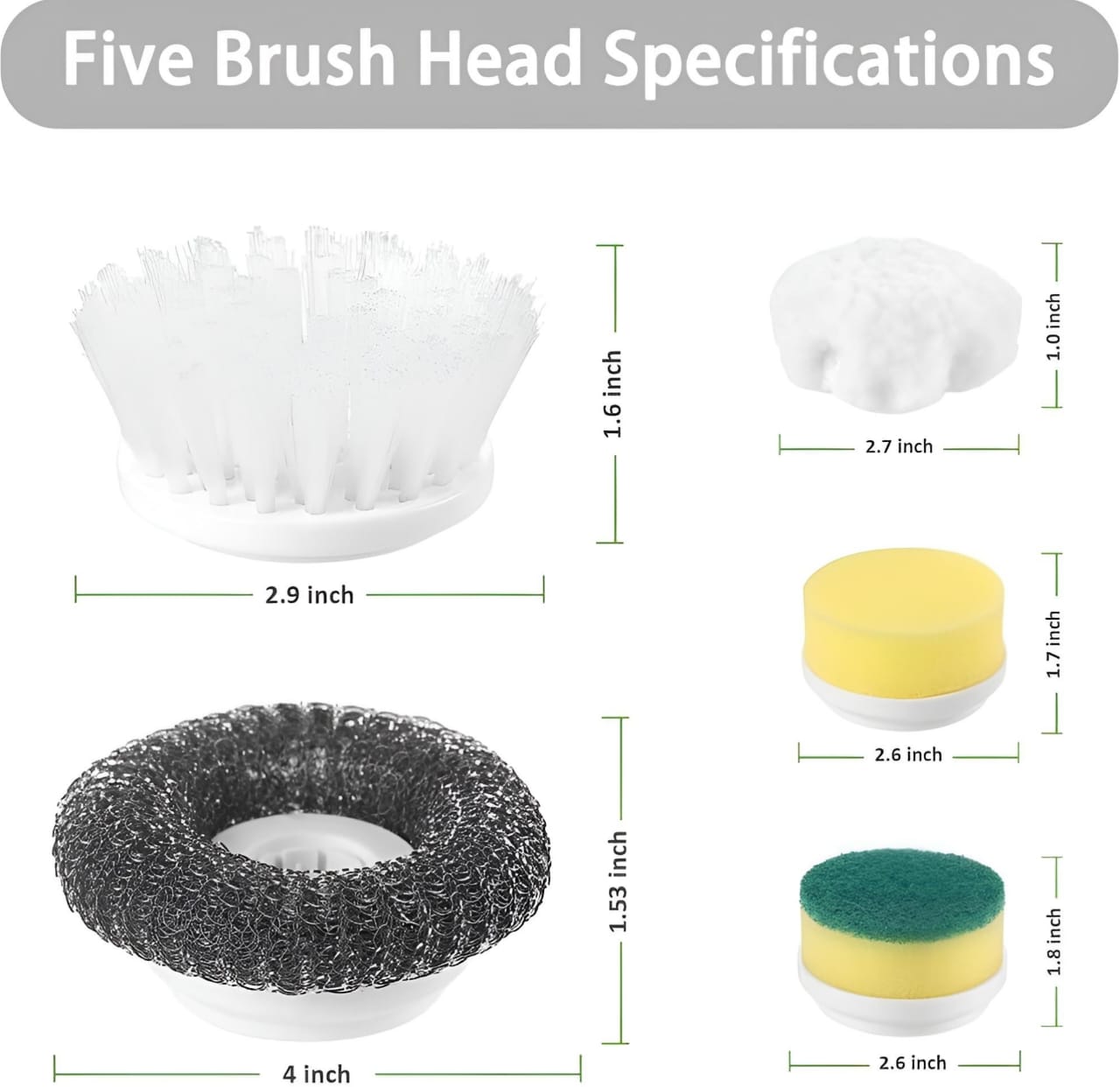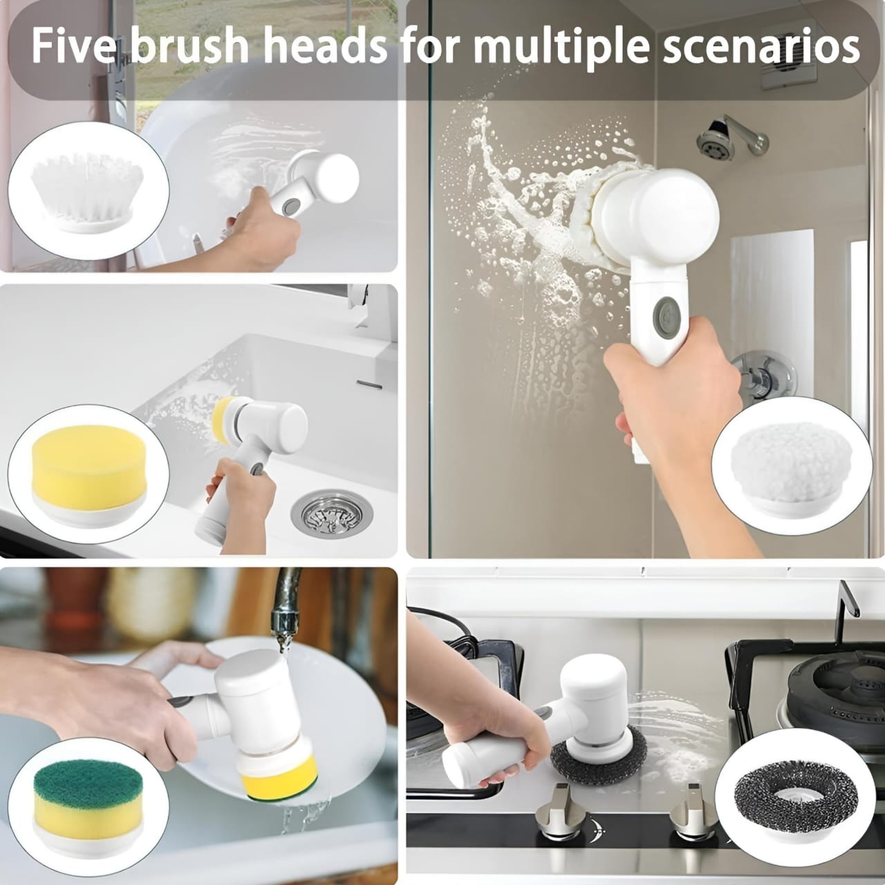 🟡 Includes five different brush heads for multiple cleaning tasks.