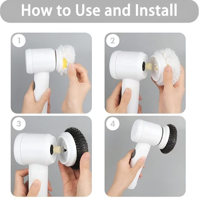 🟡 Rechargeable electric scrubber provides strong rotating cleaning power.