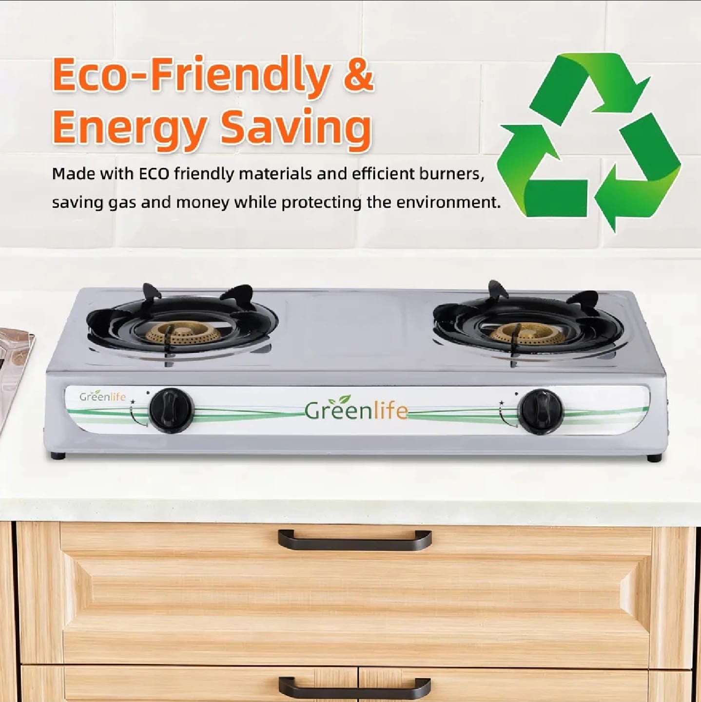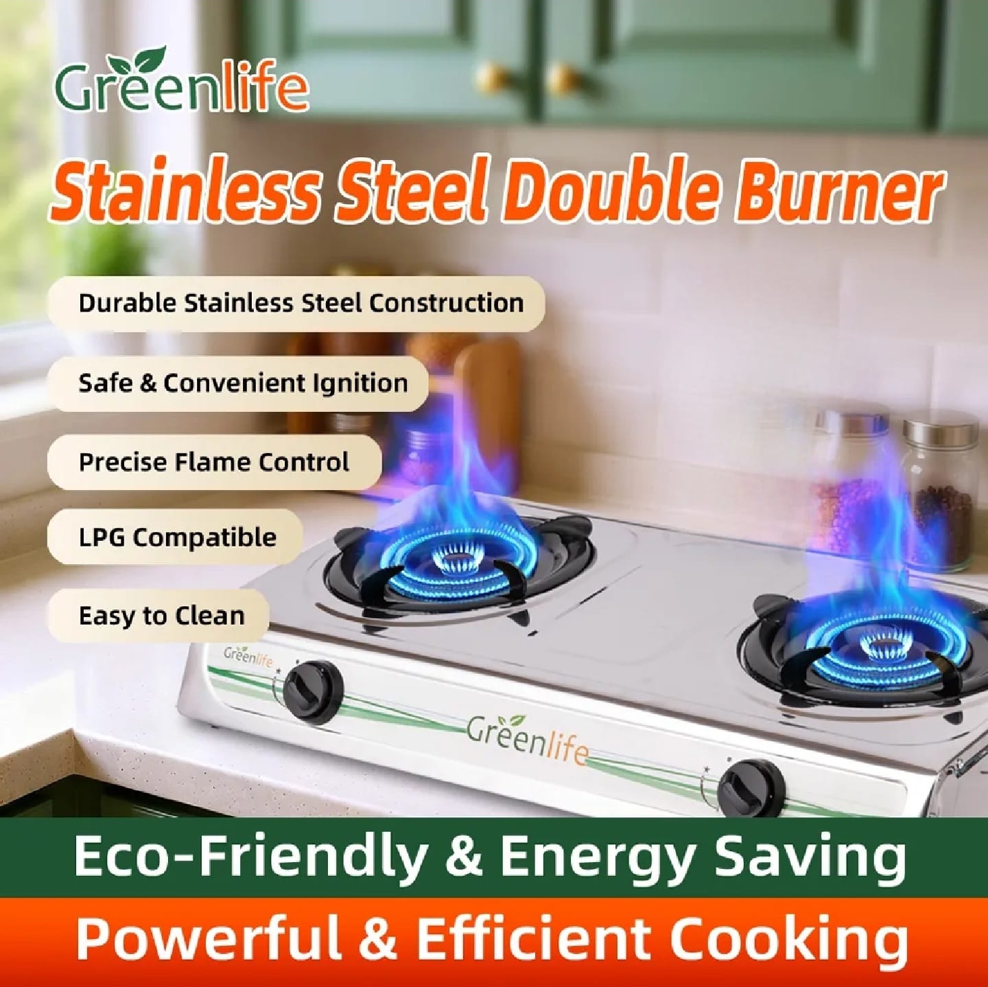 Stainless Steel Greenlife Double Burner LPG Gas Stove